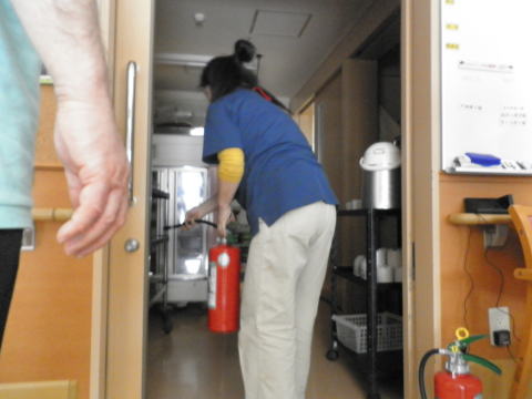 基本訓練終了後、消火器の取扱いの説明を受けました。