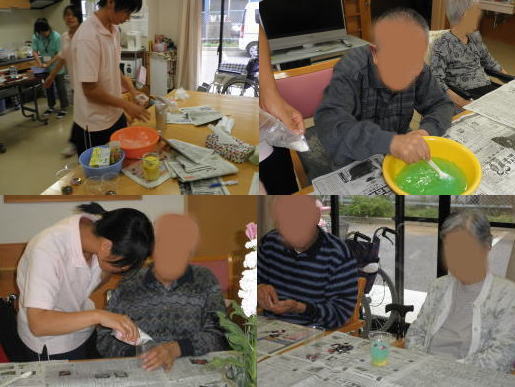 作品はデイサービス入口とフロア内に展示してあります。